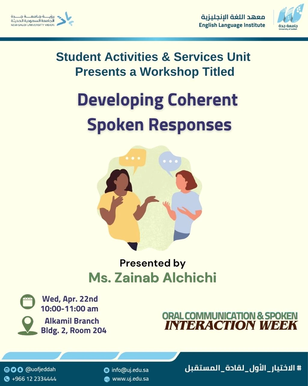 أسبوع التواصل الشفهي والتفاعل المنطوق- وحدة الأنشطة والخدمات الطلابية بمعهد اللغة الإنجليزية