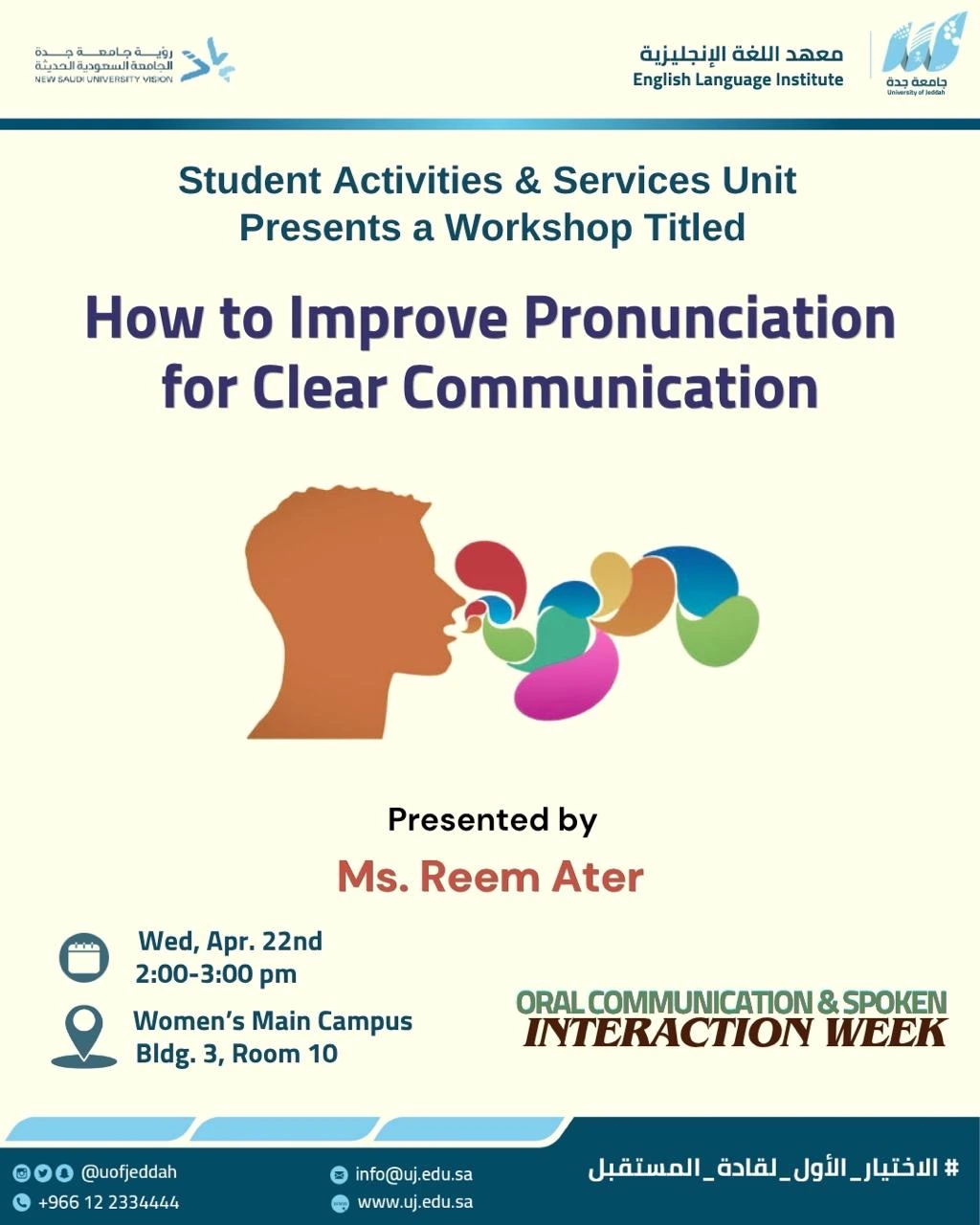 تدعوكم وحدة الأنشطة والخدمات الطلابية (SASU) بمعهد اللغة الإنجليزية (ELI) لحضور ورشة عمل بعنوان: